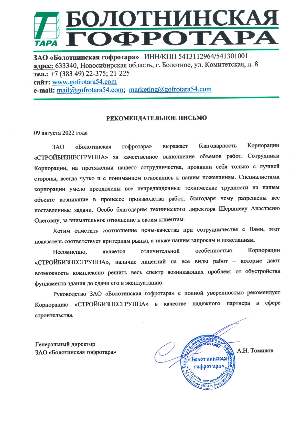 ЗАО «Болотнинская гофротара»