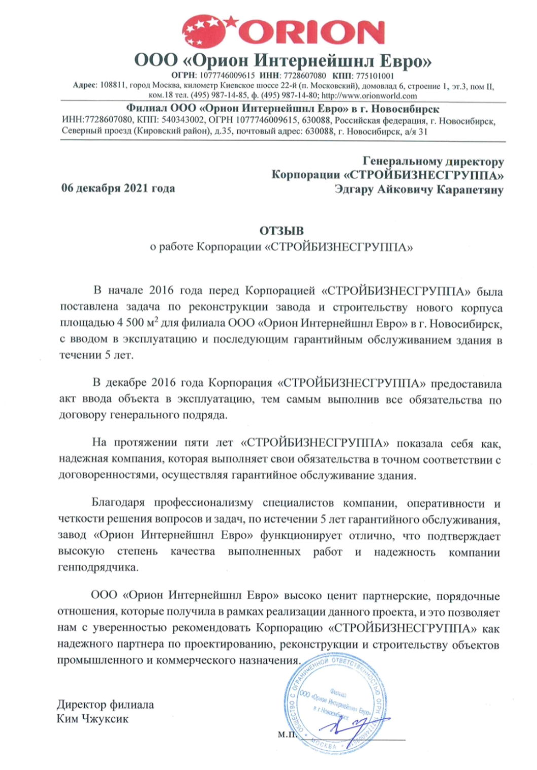 ООО «Орион Интернейшнл Евро»